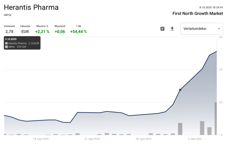 Herantis on vuotanut kuin seula ennen tiedotteen pukkaamista 7.10. (ei siis 8.10., joka on kuvaajassa loppupiste).