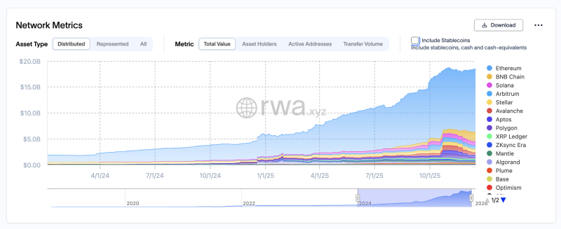 Ja tietysti Ethereum on ollut se ketju, johon RWA:t ovat menneet. Vaikka viime aikoina BNB on kasvanut myös todella nopeasti.