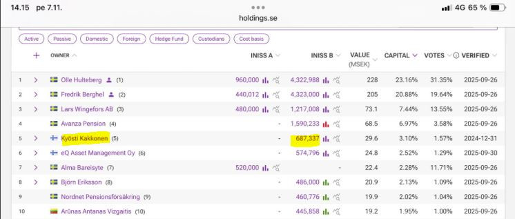 Inissionissa on viimeaikoina vaihtunut varsin kookkaita blockeja. Holdingsin listalla en ole aiemmin tänä vuonna Kyösti Kakkosta nähnyt. (Vaikka tuo Verified kohta jostain syystä näyttääkin 2024-12-31)