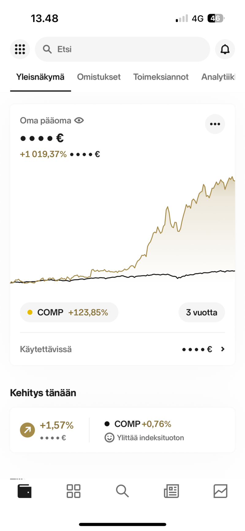 Pääoma nyt vapaana lockupista, mutta odottelen sen kanssa verotussyistä ainakin tammikuulle. Pidän yhtiöitä aikalailla täyteen hinnoiteltuna ja yhtiöön ladattuja kasvuennusteita haasteellisena. Yhtiön laatu ja kannattavuus kyllä hyvä, mutta hintalappu saa kyllä katsomaan vähennystä mieluummin. Tässä mahdollinen spotti myydä jos ilmoittavat uudesta ”yli-isosta” osingosta keväällä ja siihen jos osinkokiimaiset tarttuisivat ostaen ylös. Taseen purkuun on vielä pääomia vapaana. Seurataan laskentaperusteisen kannan pienentymistä ja pääomakevyen varainhoidon AUM kasvua lähinnä.