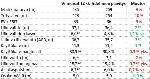 Admicom järjestää pääomamarkkinapäivän loppuvuodesta. Täällä kerrotaan varmaan myös uusia taloudellisia tavoitteita. Vanhat asetettiin edellisen johdon ja vanhan pääomistajan aikaan. Tästä huolimatta Leisti veistelee 100m euron ARR-tavoitteesta edelleen. No, onhan se vielä virallinen tavoite. En silti ihmettelisi, jos tätä vähän järkevöitettäisiin.