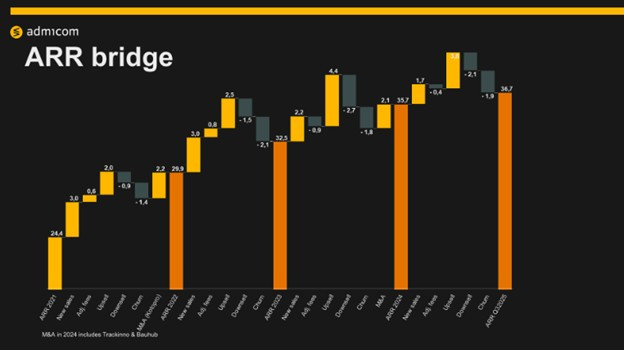 Yhtiö arvioi vuonna 2025 jatkuvan vuosilaskutuksen (ARR) kasvavan 6-10 % (8-14 %). Jatkuva vuosilaskutus vuonna 2024 oli 35,7 miljoonaa euroa.