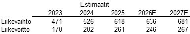 Bruttomarginaali on yli 70 % ja liikevoittomarginaali yli 40 %.