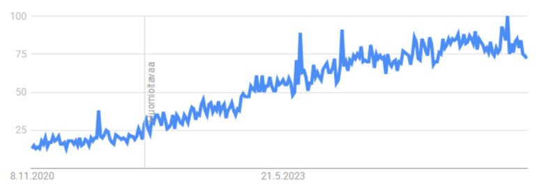 Japanissa vahva trendi, vaikka viimeaikoina voi silmällä havaita jonkinlaista tasaantumista.