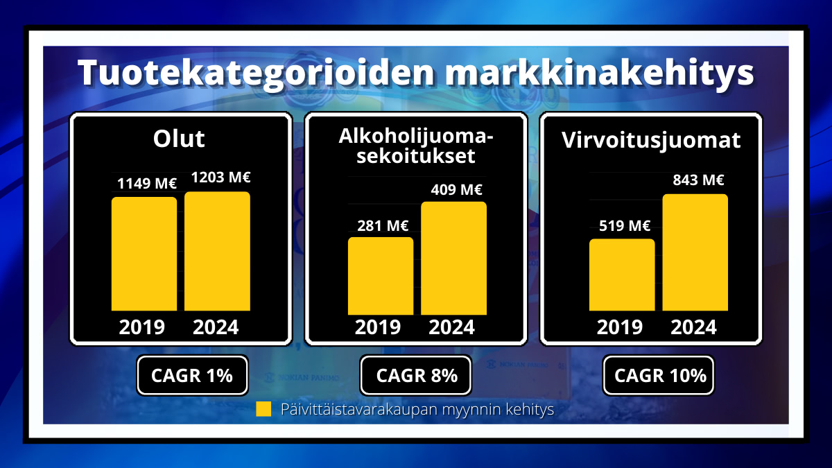 Olemme historiassa onnistuneet kasvamaan markkinaa nopeammin ja uskomme pystyvämme siihen myös tulevaisuudessa. Tavoittelemme kasvua markkinaosuuksia kasvattamalla olemassa olevilla tuotteilla ja tuoteryhmillä sekä uusilla tuoteryhmillä. Olemassa olevissa tuotteissa ja tuoteryhmissä kasvua on tehtävissä myyntipisteiden määrää ja valikoiman laajuutta kehittämällä sekä brändien tunnettuutta lisäämällä. Kasvua tullaan hakemaan myös uusissa tuoteryhmissä. Esimerkkejä tuoteryhmistä, joissa emme tällä hetkellä ole ovat energiajuomat, vedet, alkoholiton olut ja hard seltzerit.