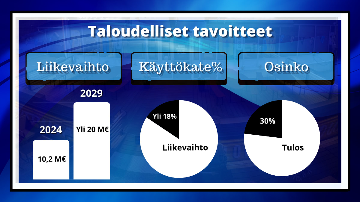Historiassa tuotantokapasiteetti on aika ajoin ollut myyntiä rajoittava tekijä ja on silloin näkynyt erityisesti kesäsesongissa heikompana toimitusvarmuutena olemassa oleville asiakkaille. Tällä hetkellä kapasiteetin puolesta pystymme ja haluamme kasvattaa myyntiä vanhoissa ja uusissa asiakkaissa myös kesäsesonkina. Olemme suunnitelleet tuotantokapasiteetin lisäyksiä tuleville vuosille niin että kapasiteetti mahdollistaa vähintään vuodelle 2029 asetetun 20 miljoonan euron liikevaihtotavoitteen saavuttamisen (liikevaihto 2024: 11,9 miljoona euroa).