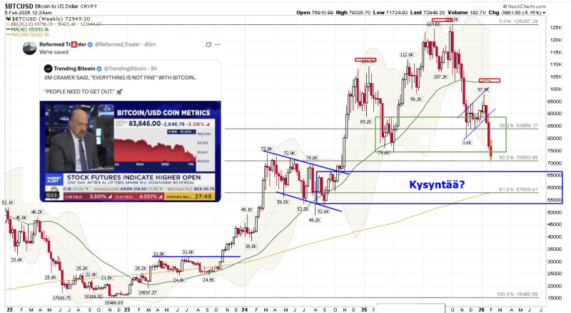Toki turhauttaa nyt vähän muutenkin taas nuo markkinat. Kulta ja hopea juoksee todella kovaa. Indeksit olleet myös hyvässä nousussa, eilinen pois lukien. Tuntuu taas, että kaikki muut nousee, paitsi kryptot. Ne ei vaan saa vauhtia alle millään. Vähän tulee valon pilkahdusta ja kurssitkin nousee, niin Jenkkien höyrypää lisää vettä myllyyn, ja kaikki kurahtaa taas. Krypto-influensseritkin julkaisee nykyään enemmän kullan ja hopean kurssiuutisia, kuin kryptojen. Ja kuitenkin 10 vuotta ensin haukuttiin Peter Schiffiä porukalla, miten hukassa se on kultansa kanssa ja miten tulee häviämään Bitcoinille. Nyt on hypätty samaan kelkkaan. Toki tuo influensseri-porukka on kyllä muutenkin niin selkärangatonta nilviäistä, ettei se mitenkään yllätyksenä tule. Kun moraali on myytävänä, niin miksei myös periaatteet.