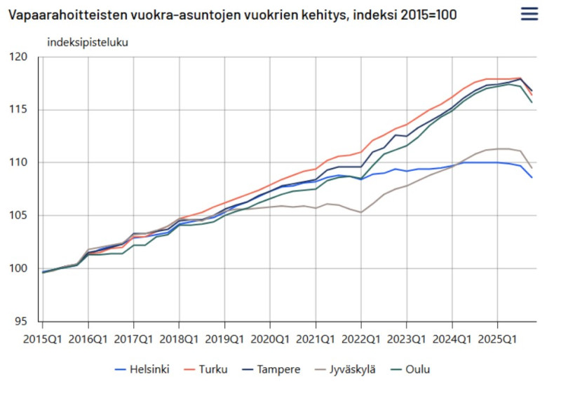 Tilastokeskuksen vapaarahoitteisten asuntojen vuokraseurannassa kannattaa ottaa huomioon, ettei se seuraa oikeasti vapaarahoitteisia vuokria. Tilasto perustuu tuettuun vuokra-asumiseen. Tilaston kuvauksesta: