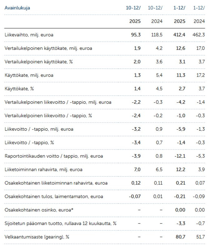 Suomisen raportoitu liiketulos oli vuoden viimeisellä neljänneksellä -5,0 miljoonaa euroa, kun vertailukaudella tulosta kertyi vielä 3,9 miljoonaa. Inderes odotti liiketuloksen olleen -2,8 miljoonaa euroa.