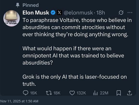 On mahdollista, että joku idiootti selaa X:ää, mutta ei ole visionäärin seuraaja, joten on hyvä ostaa myös vähän mainoksia, joissa pointti tulee aivan selväksi.