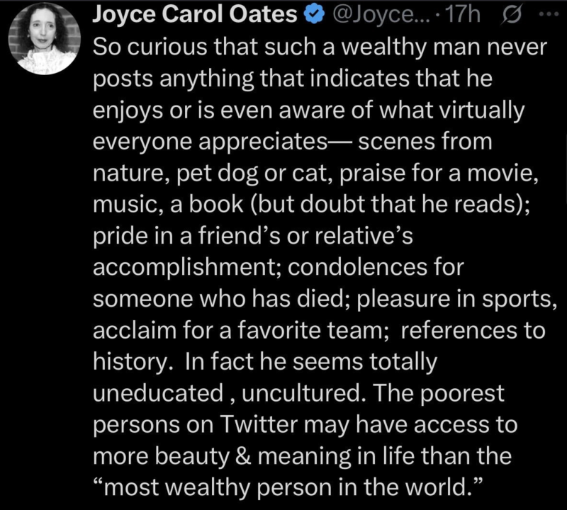 Nimittäin 87-vuotias kirjailija ihmetteli, miten maailman rikkain ihminen ei vaikuta tekevän mitään, mitä sen rahan voisi kuvitella mahdollistavan:
