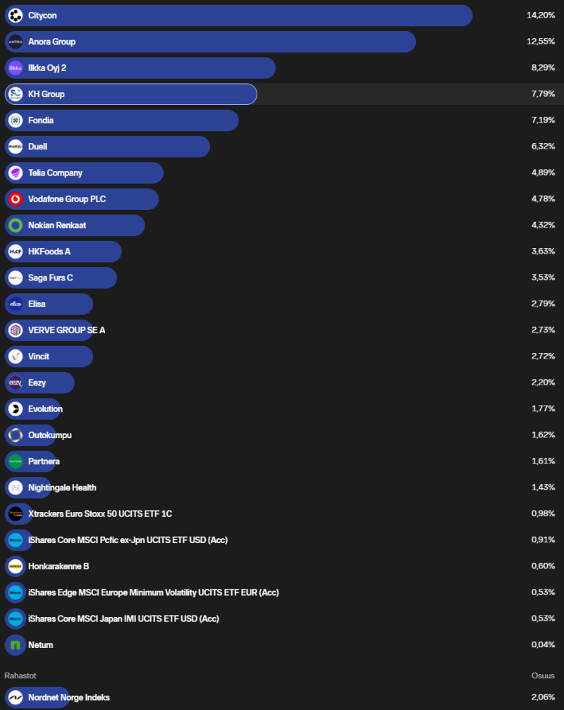 Ei paljoa lohduta pikkuvoitot illan peleistä enää kun tsekkaan salkun ja näen 4x isomman kuoppapäivän salkussa. Ostaisin toki lisää, jos olisi rahaa koska arvostukset isoimmissa omistuksissa ovat suurelta osin lähinnä naurettavia (esimerkkeinä Citycon ja Anora eli kaksi suurinta positiota). Täytyy katsoa että pistäisikö pelikassavipua peliin huomenna.