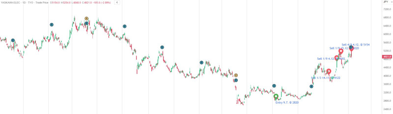 Oma tarina Yaskawan kanssa tuli toistaiseksi päätökseen. Paremmin suoriutunutta Fanucia jäi vielä salkkuun. Alla käyrään piirretty kaupat ja tässä ajatushistoria päiväkirjasta: